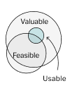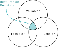 Successfuly managing these three risks means making smart decisions about what to build and how to build it. Such decisions are said to be smart when each has been EQUALLY vetted for value, feasibility, and usability.