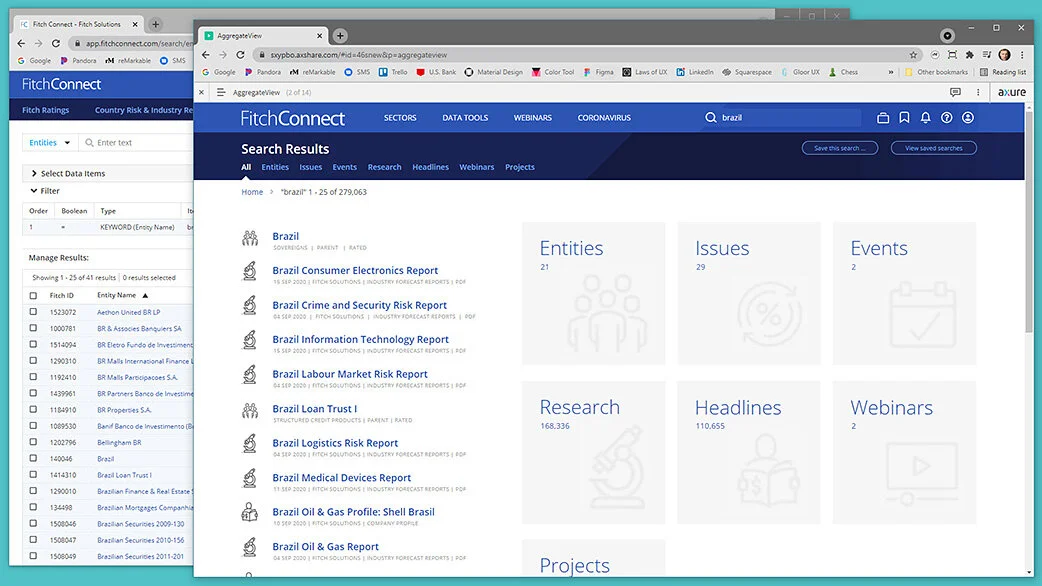Along with Moody’s and S&P, Fitch Ratings is one of the “Big Three” credit rating agencies. The content it produces is delivered at great expense to subscribers by Fitch Solutions through FitchConnect, a Web-based “enterprise research platform” conceived and produced by a handful of business and technical people in 2015. None of whom were designers. The result was an all-too common one: Inscrutable workflow and poor retention had become the product’s hallmarks. In 2019, the technical manager and I endeavored to change all that. Together we not only transformed the product, we transformed the organization.